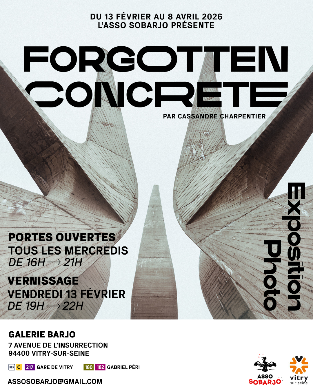 Le vernissage se déroulera le vendredi 13 février de 19H à 22H à la Galerie Barjo, 7 Avenue de l'Insurrection à Vitry-sur-Seine.