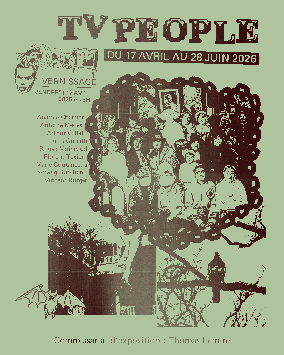 L’exposition explore des espaces familiers ; le salon, la chambre, l’écran, influencés par les images de la télévision et des jeux vidéo. Elle s’intéresse à la manière dont ces images marquent notre mémoire personnelle. Ces lieux apparaissent à la fois rassurants et inquiétants. Conçue comme une « safe-room » (ces espaces protégés dans les jeux vidéo), l’exposition offre un moment de pause. Un espace où l’on peut prendre du recul face aux images qui nous entourent, les observer autrement et développer un regard plus conscient et critique. À travers ce parcours, TV People interroge l’impact des images médiatiques sur une génération qui a grandi avec elles.