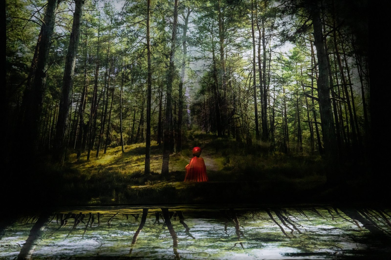 Pour donner vie à ce récit initiatique, Das Plateau a imaginé une scénographie de filtres et de miroirs où le mystère de l’enfance et le merveilleux sont là, à portée de main. Un dispositif optique qui rivalise d’ingéniosité et se déploie en une succession de tableaux-paysages : la forêt profonde, les rayons du soleil dans les arbres, le chemin caillouteux qui mène chez la grand-mère… De ce poème visuel et jubilatoire naît un spectacle émancipateur, qui affirme avec force le droit au mystère, au plaisir et à la liberté.