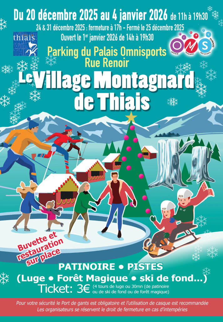 Du 20 décembre 2025 au 4 janvier 2026 : À l’occasion des festivités de fin d’année, l’Office Municipal des Sports ouvre un village montagnard éphémère à Thiais. Au programme : patinoire, pistes de luge et de ski de fond..)