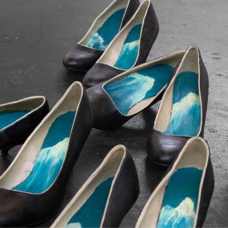 Emilie Pitoiset, Apodyosis (the mental undressing of a person), 5 pairs of heels, acrylic paint, varnish, variable dimensions, 2013. Courtesy of the artist & Klemm’s, Berlin