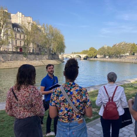 Depuis ses origines, Paris doit tout à son fleuve, à cette bienfaisante déesse Sequana. Son blason ne représente-t-il pas un navire ? Ses quais ont remplacé les anciennes plages de sable sur laquelle s’activaient les débardeurs dans les nombreux ports de la capitale. Autour, les baigneurs batifolaient, les laveurs de chiens et les perruquiers appâtaient le client. Les ponts se sont progressivement débarrassés de leurs maisons, dévoilant un paysage extraordinaire sur le fleuve. Mais gare aux menaces venues de cette Seine impétueuse, prompte à sortir de son lit ! Heureusement, Sainte-Geneviève veille… Ensemble, remontons le cours de l’histoire de la ville qui s’est construite sur les rives de son fleuve. Cette visite est ludique, avec une personnalité à deviner.